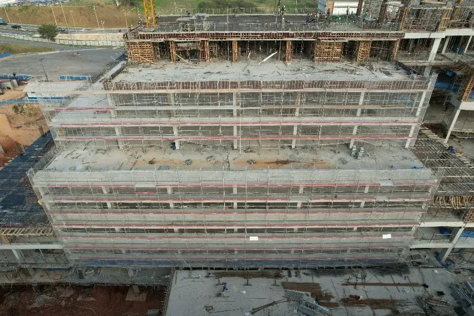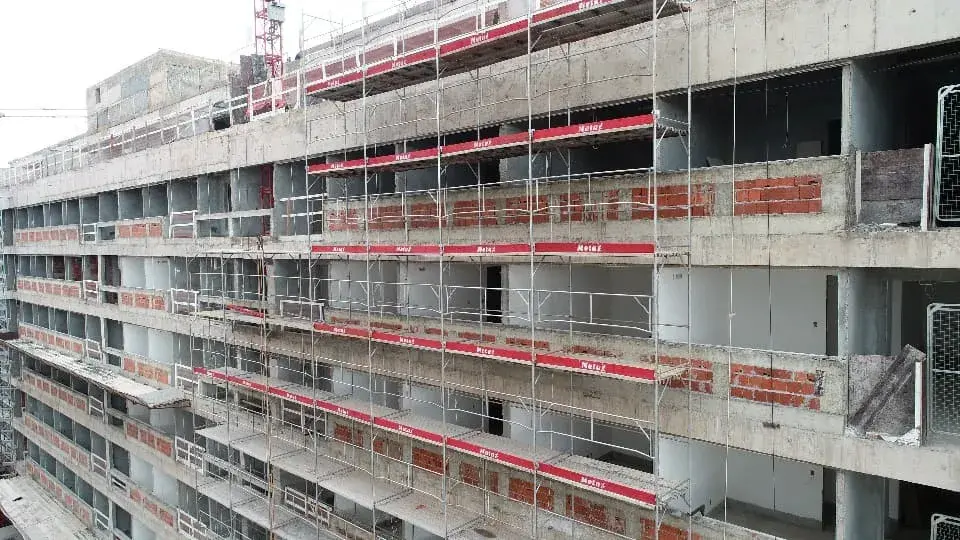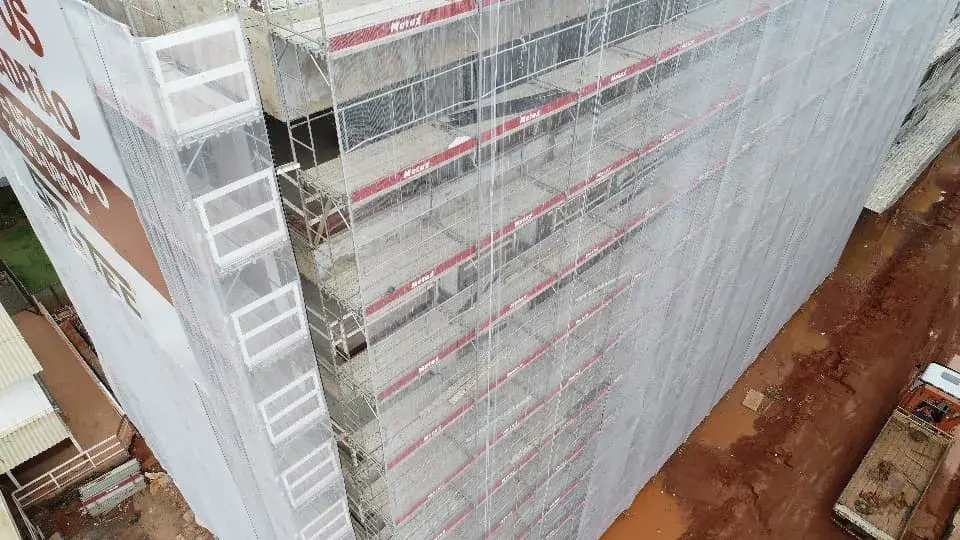 O Andaime Fachadeiro oferece acesso seguro e estável. É fundamental para garantir eficiência e segurança em projetos de envelopamento de fachadas, contribuindo para a estética e velocidade da obra.